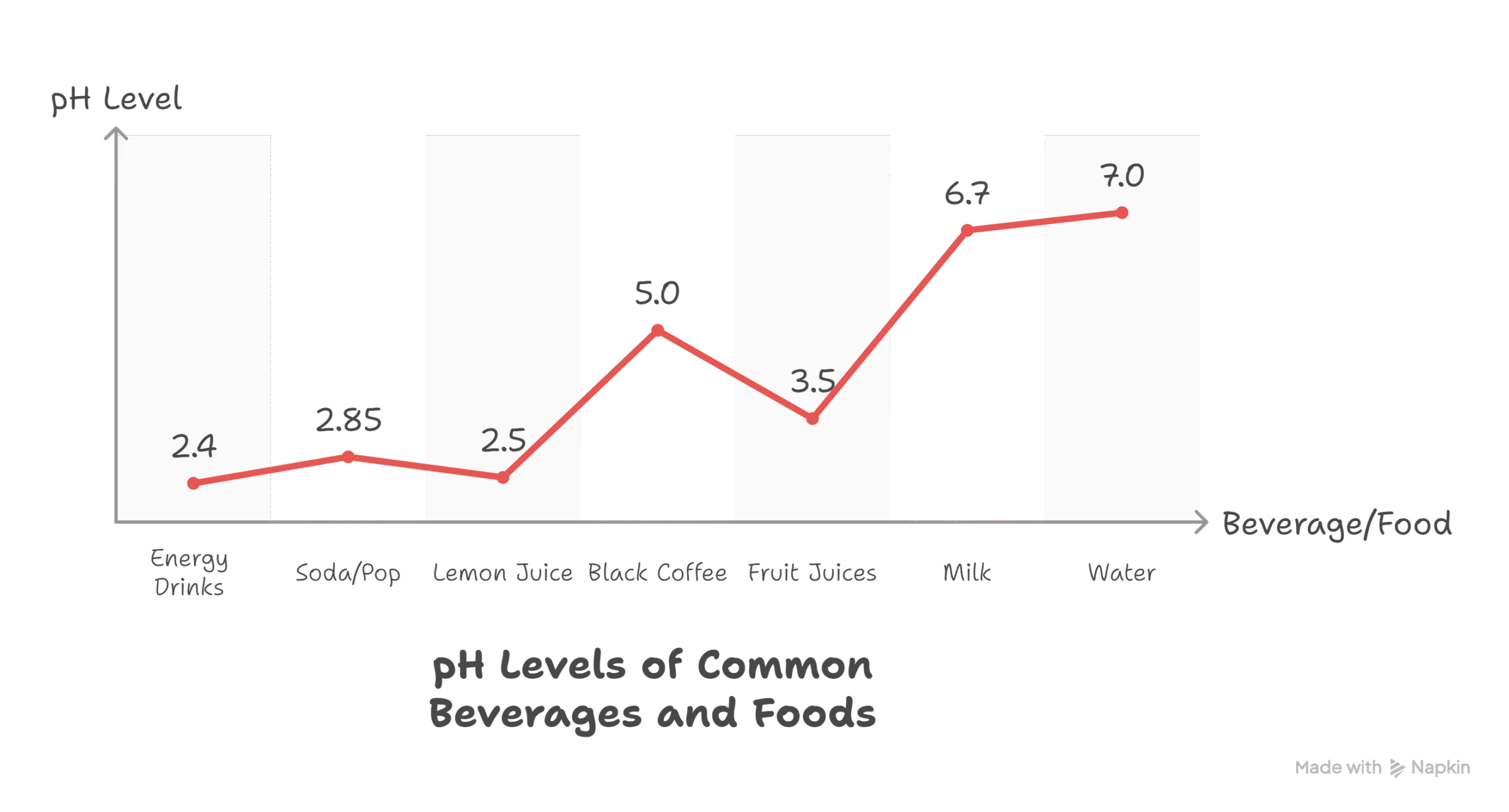 - Energy Drinks: Often incredibly acidic, with pH levels ranging from 1.5 to 3.3 (Periodontalhealthcenter.com reports popular brands like Red Bull, Monster, and Celsius in this range).